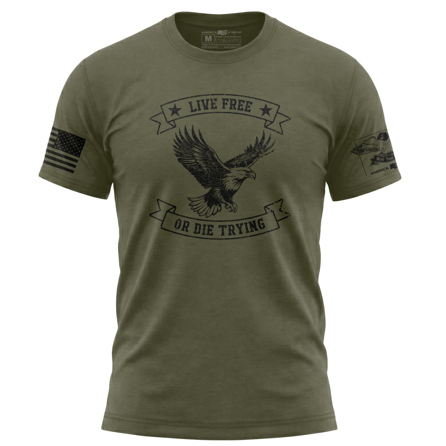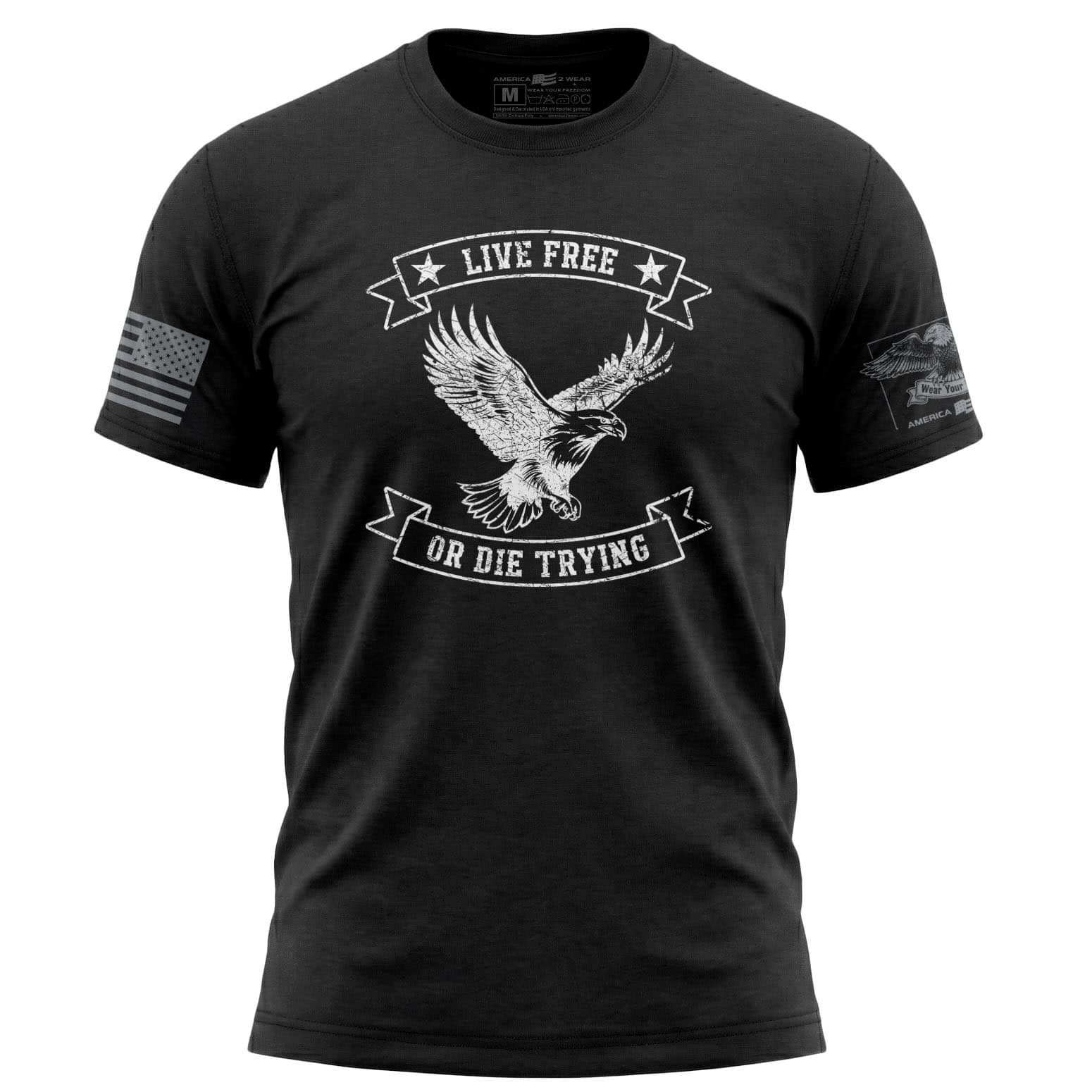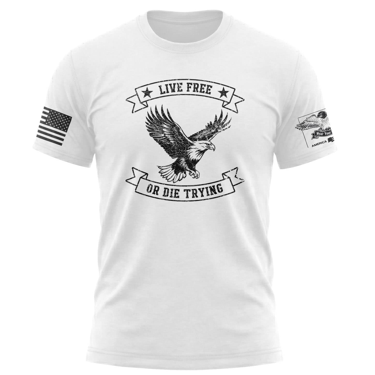 Live Free or Die Trying T-Shirt – Distressed Eagle Patriotic Tee
